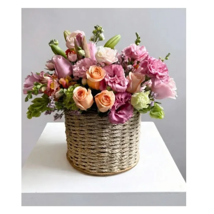 Elegante arreglo elaborado con rosas, flores en tonos pastel y follaje natural, diseñado para transmitir cariño, dulzura y optimismo. Ideal para sorprender en cumpleaños, celebraciones especiales y fechas importantes. Incluye tarjeta personalizada.
